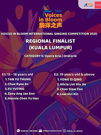 Voices in Bloom 2025 Kuala Lumpur Regional Finals : 7th June 2025